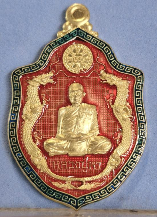 เคาะเดียวแดง เหรียญ มังกร คู่ เต็ม องค์ รุ่น แรก หลวงปู่หา วัดสักการะวัน เนื้อทองเหลืองลงยา 2 สี |