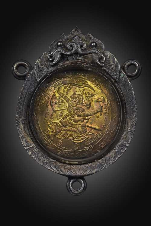 เหรียญพญาครุฑ หลวงปู่ศิลา วัดโพธิ์ศรีสะอาด รุ่นยอดบารมี ลังนำฤกษ์ เนื้ออาบทองโบราณ ลงยาทรงเครื่อง ลงยาปีกครุฑ พื้นแดง No.5 |