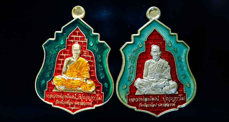 เหรียญหลวงพ่อทอง วัดก้อนแก้ว จ.ฉะเชิงเทรา (เนื้อเงินลงยา สภาพสวย หายาก กล่องเดิม) |