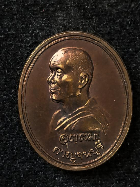 เหรียญหลวงพ่ออุตตมะ หลังหลวงพ่อดำ วัดตะคร้ำเอน จ กาญจนบุรี ปี 2538 |
