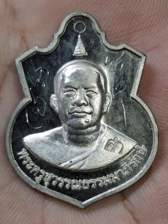 เงิน%สูงมากกว่า 99% เหรียญพิมพ์นั่งพาน รุ่น 1 หลวงพ่อสวัสดิ์ ปุณณสีโล เนื้อเงินลงยาสีฟ้า หมายเลข 102 วัดใจเคาะแรก!!! |