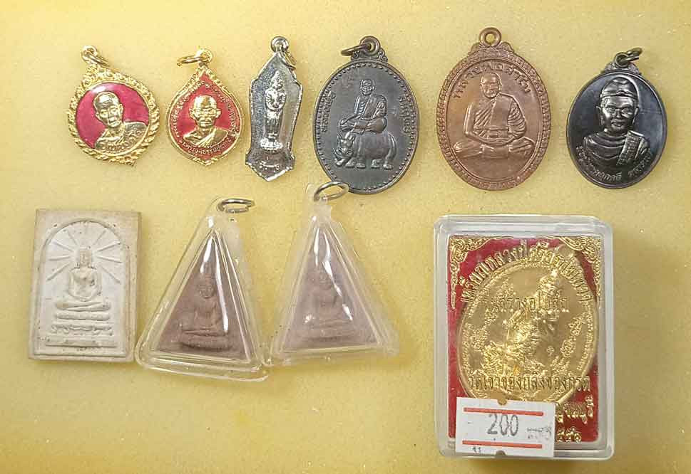 ทีเดียว 17 เหรียญ หลายเกจิ หลายยุค เช่น ลพ.ลี ลพ.ฤาษี ลพ.เปิ่น ลพ.บุญ ลพ.จ้อย เป็นต้น วัดใจจบในราคาที่ท่านเลือก |