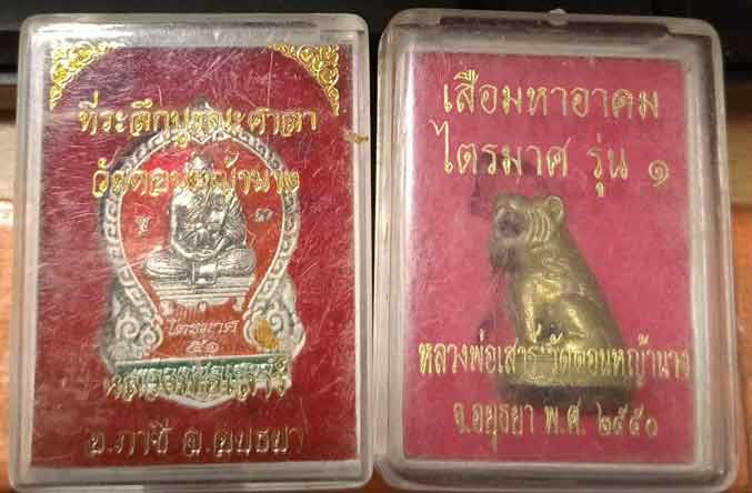 เหรียญไตรมาส ปี51 + เสือไตรมาส 50 รุ่น 1 หลวงพ่อเสาร์ วัดดอนหญ้านาง อยุธยา กล่องเดิม |