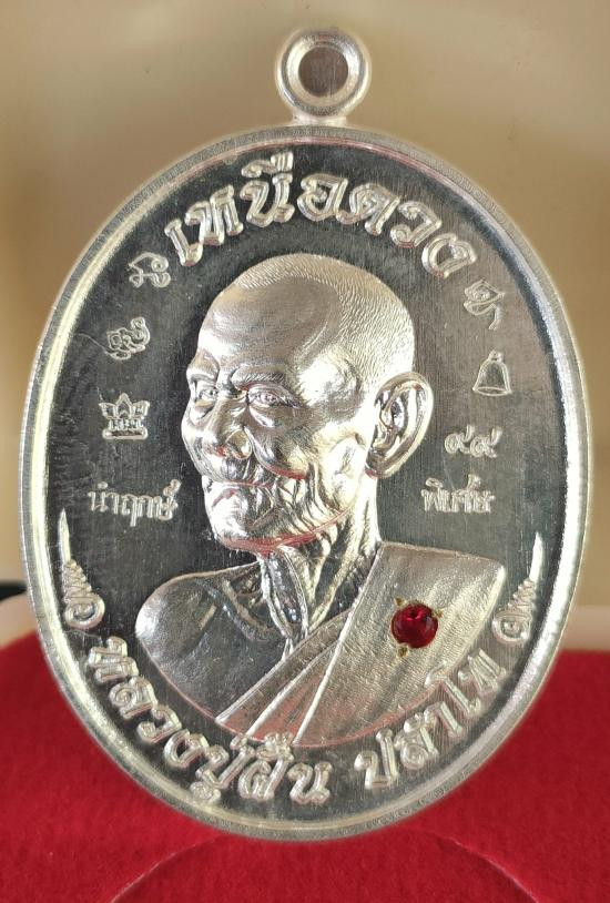 เหรียญหันข้าง"เหนือดวง" หลวงปู่ฝั้น ปสาโท วัดศรีถมอรัตน์(หน้าผา) เพชรบูรณ์ ชุดนำฤกษ์ เนื้อชุบจิวเวอรี่ ฝังพลอยแดง ตอก"รวมโค๊ต" หมายเลข ๙๙ พร้อมกล่อง เลขสวยน่าสะสมคับ (สร้าง10เหรียญ) |