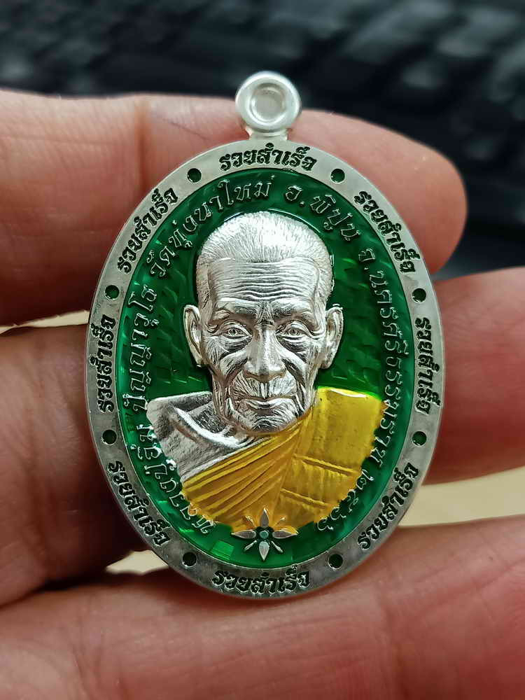 วัดใจ 100 เหรียญรวยสำเร็จ หลวงปู่อิ่ม วัดทุ่งนาใหม่ จ.นครศรีธรรมราช 2566 กะไหล่เงิน ลงยาพื้น ขอบ จีวร หมายเลข 38 กล่องเดิม |