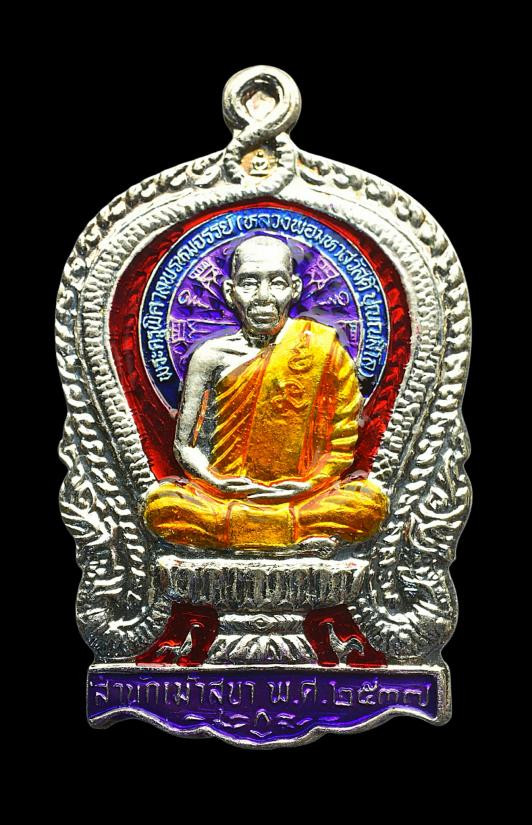 เงินกำลังมา!!! เหรียญพิมพ์นั่งพาน รุ่น 1 หลวงพ่อสวัสดิ์ ปุณณสีโล เนื้อเงินลงยาสีม่วง หมายเลข 104 วัดใจเคาะแรก!!! |