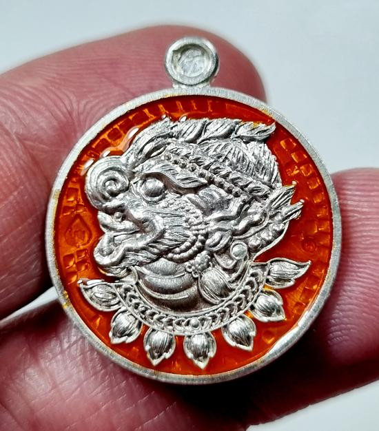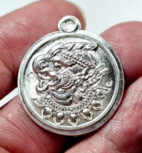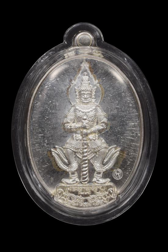 เหรียญท้าวเวสสุวรรณหลังท้าววิรุฬหก รุ่นยกฐานะ ไตรมาส 2561 หลวงพ่อวีระ วัดหอมศีล จ.สมุทรปราการ เนื้อเงิน หมายเลข 15 |