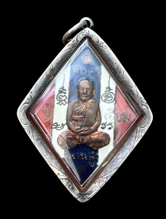 เหรียญข้าวหลามตัดหลวงปู่เอี่ยม ปฐมนาม รุ่น 200 ปีชาตกาล เนื้อทองแดงลงยาสีธงชาติ วัดบางจาก เลี่ยมเงินสั่งทำ มีจารย์ |
