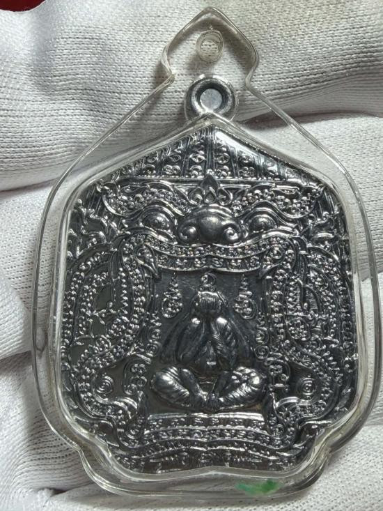 เหรียญท้าวเวสสุวรรณหลังท้าววิรุฬหก รุ่นยกฐานะ ไตรมาส 2561 หลวงพ่อวีระ วัดหอมศีล จ.สมุทรปราการ เนื้อเงิน หมายเลข 15 |