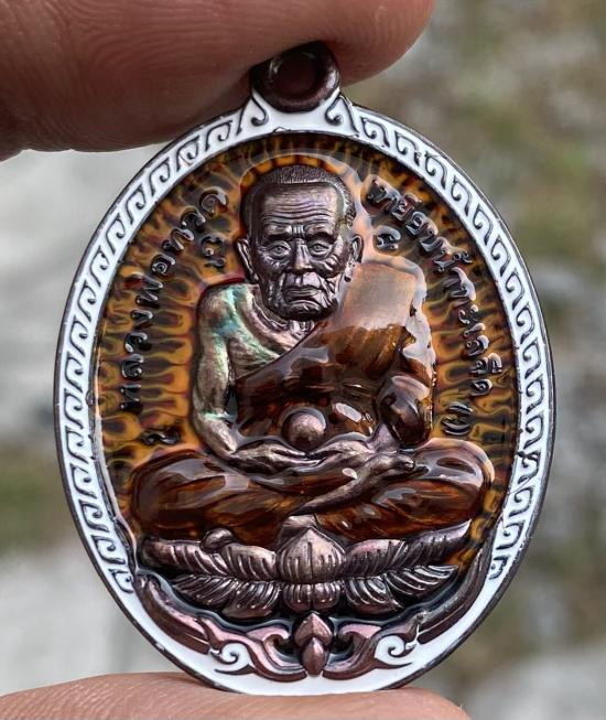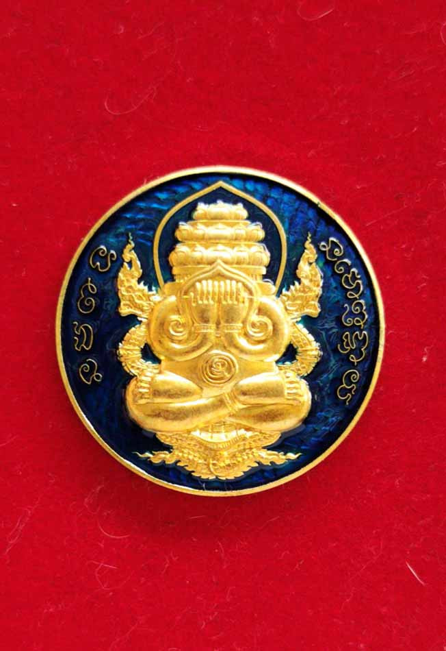 เหรียญท้าวมหาพรหม รุ่นเจ้าสัวพันล้าน(บอย ท่าพระจันทร์) เนื้อฝาบาตรลงยาพื้นน้ำเงินขอบแดง เลขโค๊ต ๘๒๑ พร้อมกล่องเดิม |