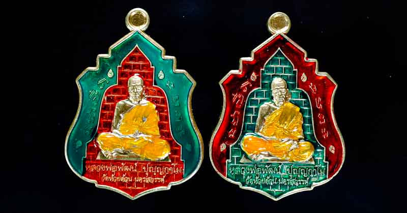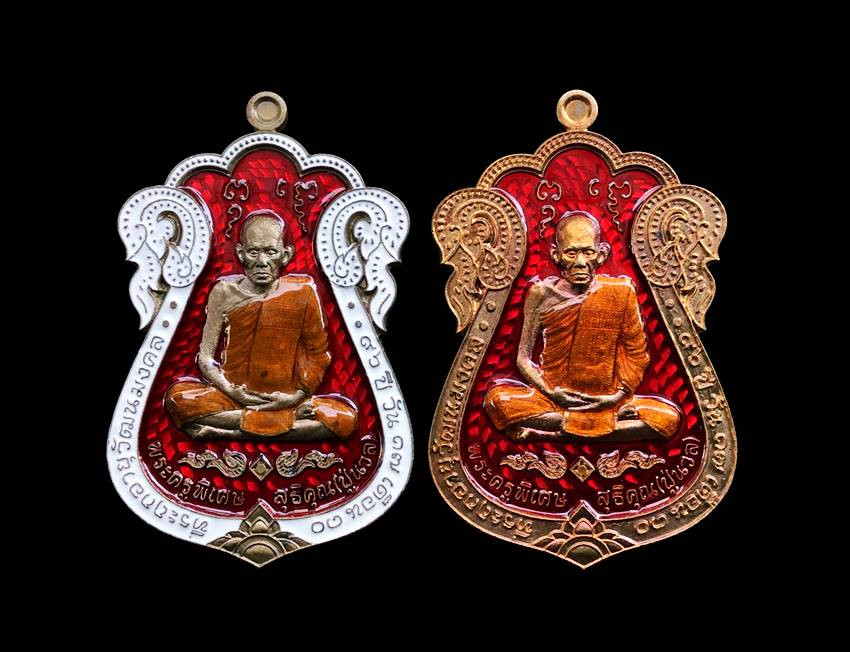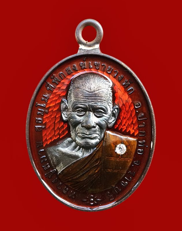 เหรียญพระปิดตาพังพระกาฬ หลวงปู่มหาศิลา สิริจันโท รุ่นรวยโชคอนันต์ เนื้อทองฝาบาตร ลงยาแดง no.88 แยกจากชุดกรรมการลงยา กล่องเดิม |