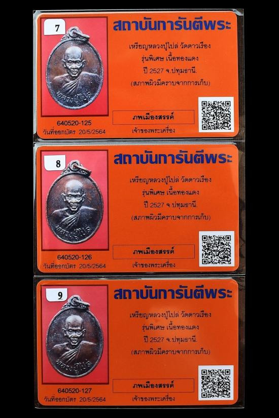*** วัดใจ 300 แดง *** ชุด 3 องค์...เหรียญหลวงปู่ไปล่ วัดดาวเรือง รุ่นพิเศษ เนื้อทองแดง ปี 2527 จ.ปทุมธานี + บัตรพระแท้การันตีพระ |