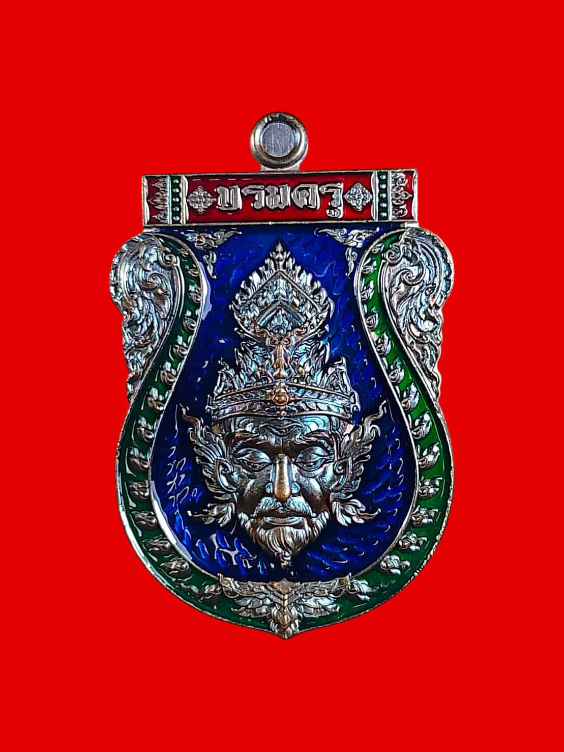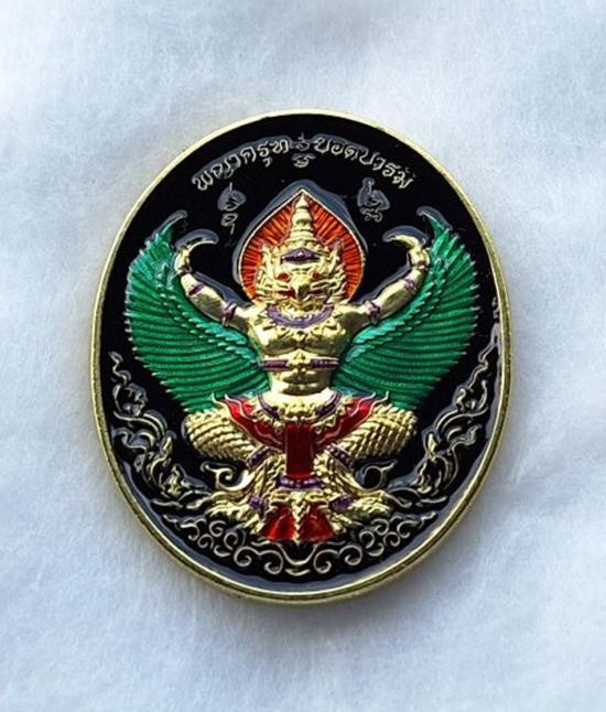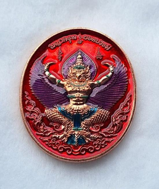 เหรียญพญาครุฑ หลวงปู่ศิลา วัดโพธิ์ศรีสะอาด รุ่นยอดบารมี ลังนำฤกษ์ เนื้อทองแดง ลงยาทรงเครื่อง ลงยาปีกครุฑ พื้นแดง No.58 |