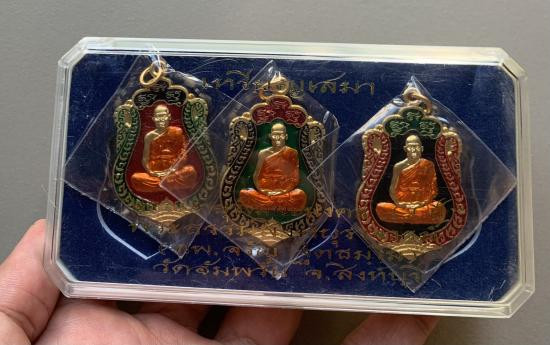 วัดใจ40 เหรียญเสมา7รอบ ฉลองอายุวัฒนะ 84ปี หลวงพ่อจรัญ วัดอัมพวัน จ.สิงห์บุรี ชุดกะหลั่ยทองลงยาสามสี 1 ชุด3 องค์ (2) |