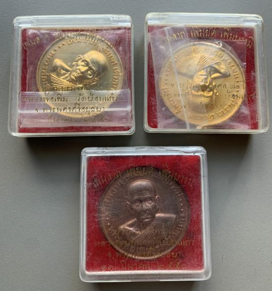 วัดใจ40 เหรียญบาตรน้ำมนต์ เพิ่มลาภ เพิ่มยศ เพิ่มบารมี หลวงพ่อเพิ่ม วัดป้อมแก้ว อ.บางไทร จ.อยุธยา ปี 2550 รวม3องค์ กล่องเดิม |