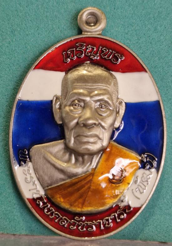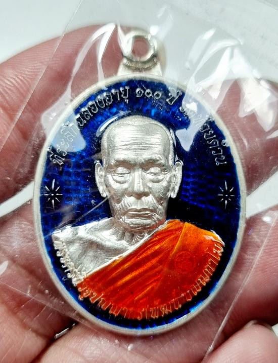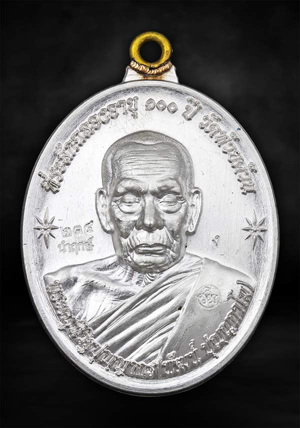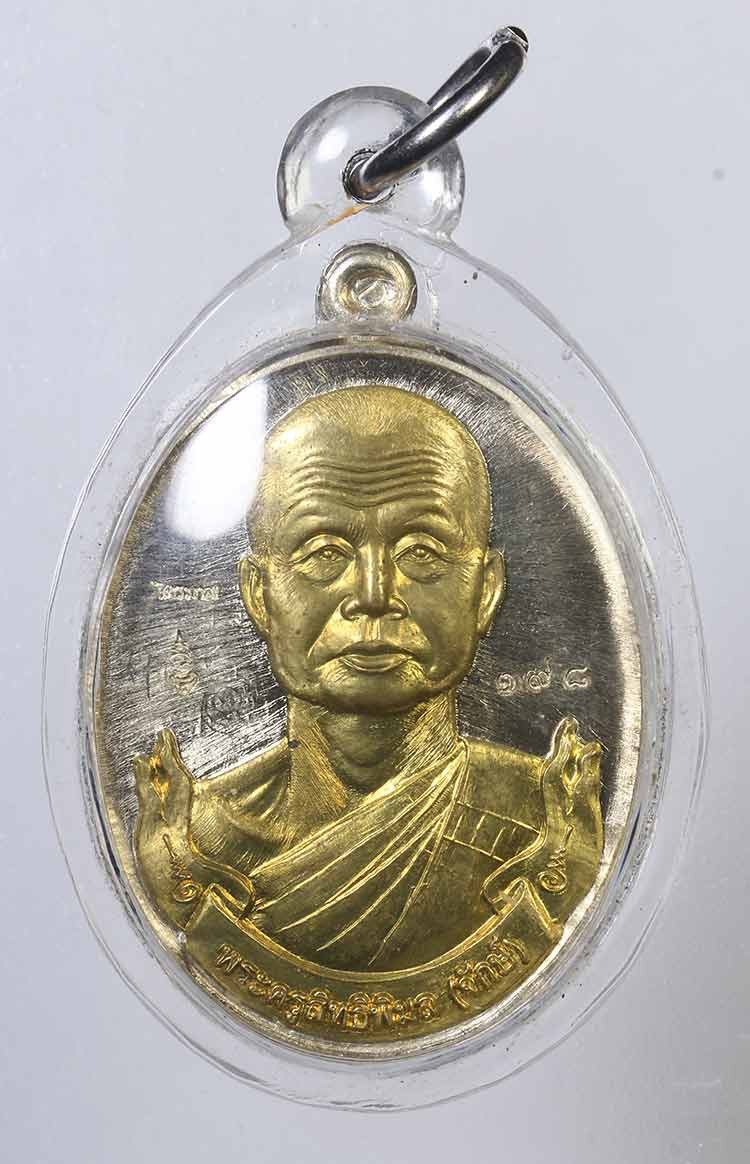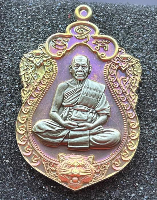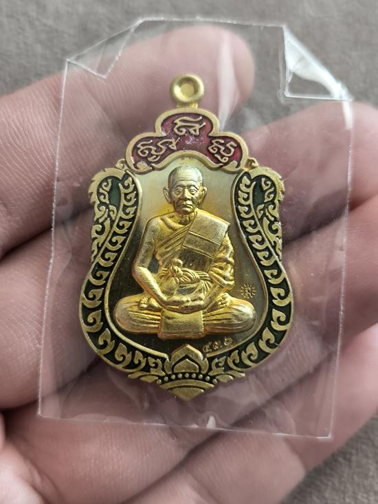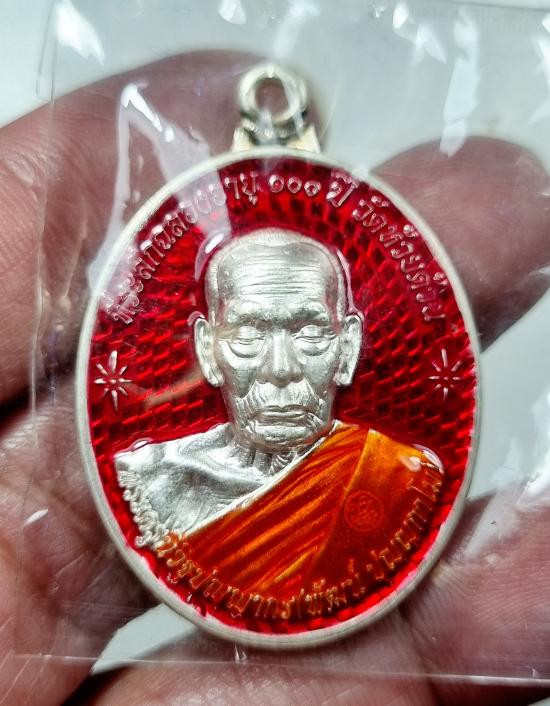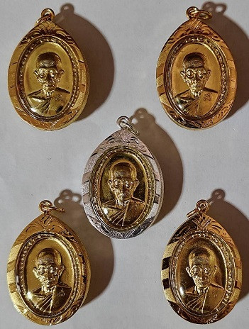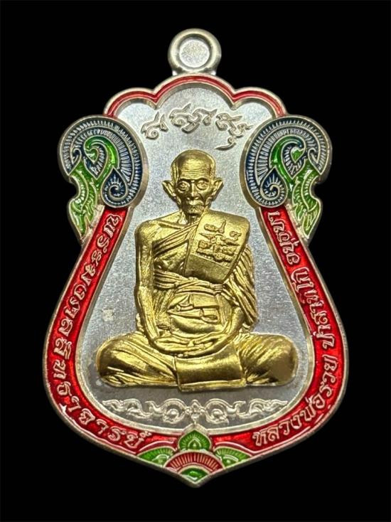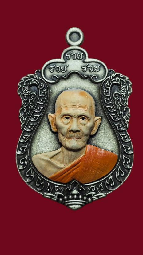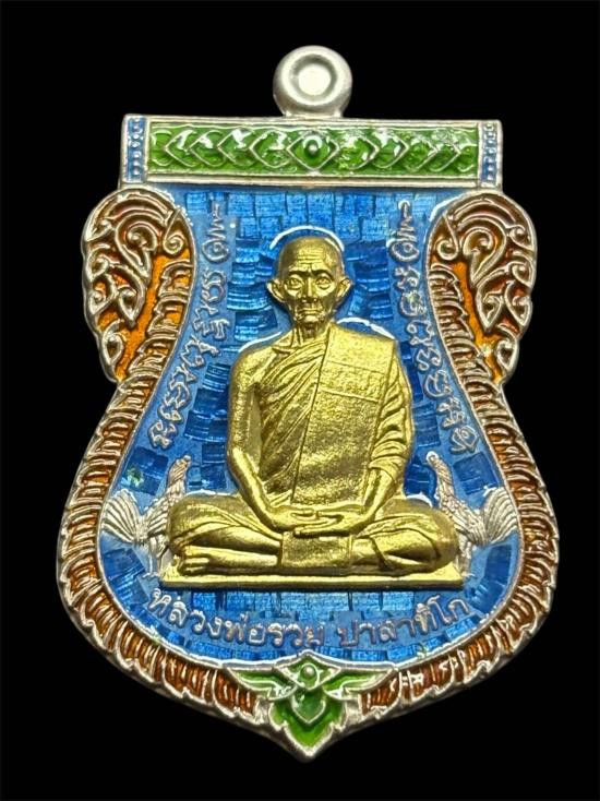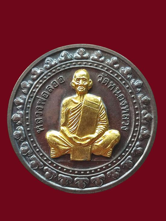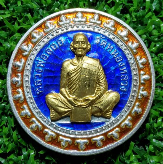 หลวงพ่อลออ วัดหนองหลวง เหรียญเสาร์ ๕ มหาลาภ ปี 2553 เนื้อเงินลงยาหน้ากากทองคำ เลข 71 มีจาร กล่องเดิม |