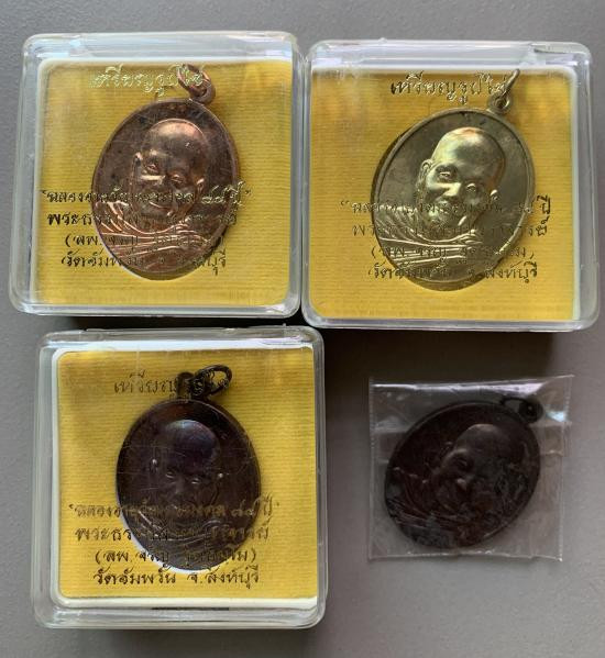 HOT!!! เหรียญอายุวัฒนมงคล 96 ปี 2560 เนื้อทองแดงผิวติดรุ้งสวย จำนวน 4 เหรียญ หลวงพ่อรวย วัดตะโก เคาะเดียวแดง |