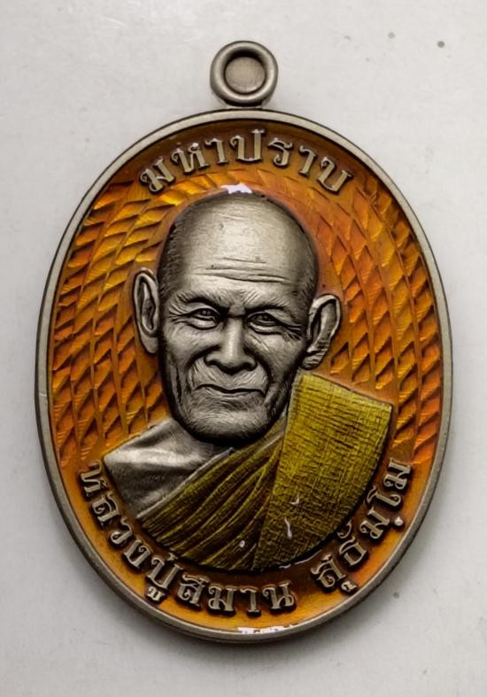 หลวงปู่สมาน สุธมฺโม ที่พักสงฆ์เขายางหัก อ.ปากท่อ จ.ราชบุรี เหรียญ มหาปราบกันภัย เลข10 ปี2567 เนื้ออัลปาก้าซาติน พื้นส้ม จีวรเหลือง สร้าง15เหรียญ |
