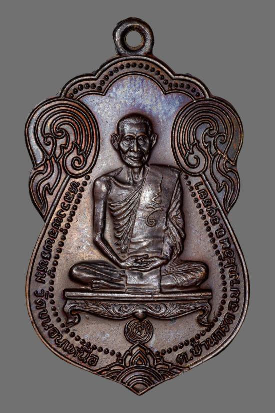 เคาะเดียวแดง...เหรียญโล่ห์รูปเหมือน เนื้อทองแดงผิวไฟ หลวงพ่อชำนาญ วัดบางกุฏีทอง ปี 2556 |