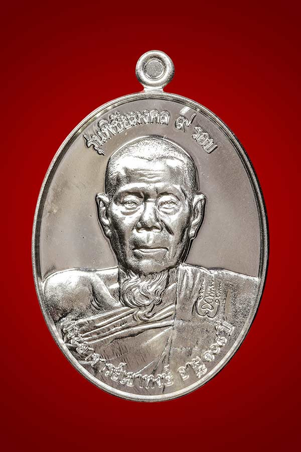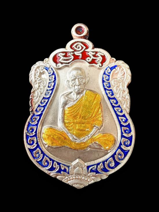 เหรียญหลวงพ่อสำเร็จศัดิ์สิทธิ์ สมเด็จธงชัย รวยพันล้าน จ.สระบุรี เนื้อเงินลงยา ตอกโค๊ต ง.ล.ย. ตอกโค๊ต ช้าง ตอกหมายเลข 422 ปี 2564 |