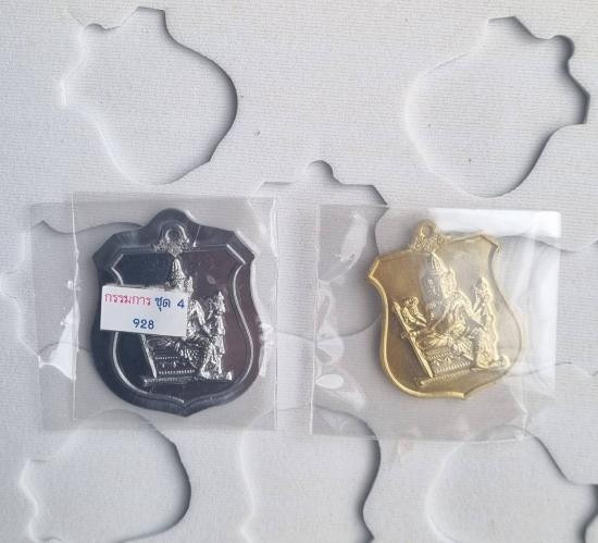 เหรียญพระพรหมพระราชทาน ปี56 พิธีเป่ายันต์พรหมสี่หน้า ครั้งที่13 แยกจากกรรมการชุด 4 เนื้อทองฝาบาตร 1+ เนื้อตะกั่วไม่ตัดปีก 1 เลขนัมเบอร์ 928 เป็นเลขเดียวกันทั้ง 2 เหรียญ ซีลเดิมจากวัดพร้อมกล่องกรรมการ |