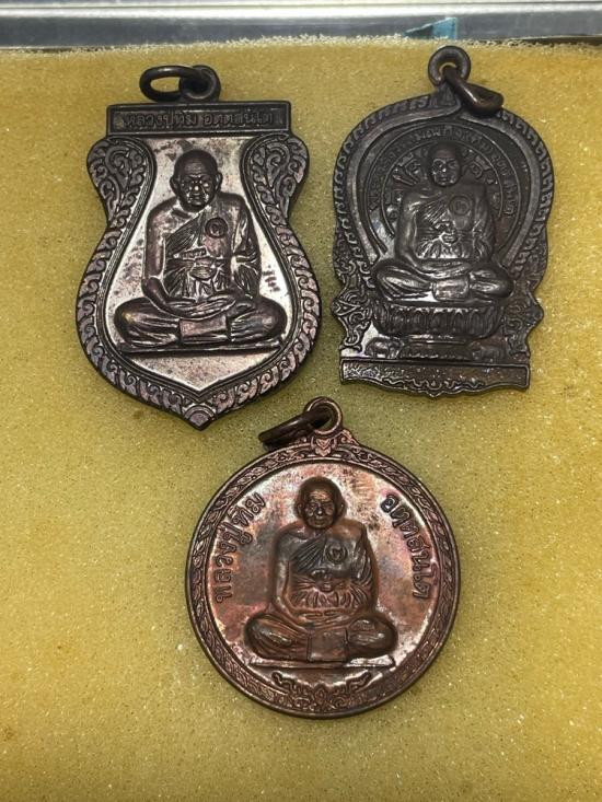 หลวงปู่บุญมา โชติธมุโม จ.ปราจีนบุรี รุ่นชนะจน บรูพาไร้พ่าย เนื้อทองแดงลงยา3เหรียญ ปี2564 |