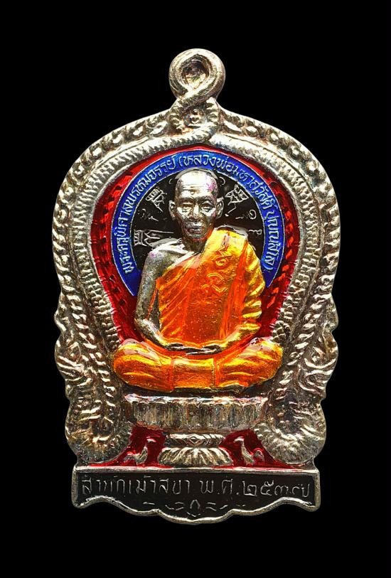 เหรียญแสตมป์หลวงพ่อโสธร รุ่น ๑ ศตวรรษ (หมายเลข ๑) เนื้อเงินหน้ากากทองคำลงยา |
