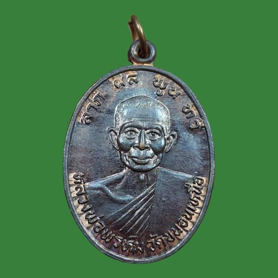 เหรียญพิมพ์นั่งพาน รุ่น 1 หลวงพ่อสวัสดิ์ ปุณณสีโล เนื้อเงินลงยาสีเขียว หมายเลข 22 วัดใจเคาะแรก!!! |