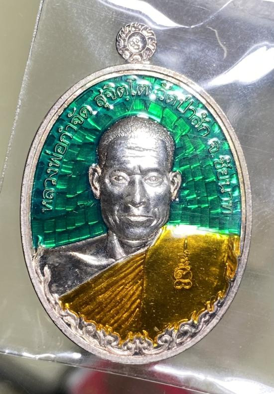 เหรียญรุ่นแรก เนื้ออัลปาก้าลงยาสีเขียว (แยกชุดกรรมการ) หลวงปู่พวง วัดน้ำพุสามัคคี จ.เพชรบูรณ์ จำนวนการสร้าง20เหรียญ สภาพสวยซองเดิม |