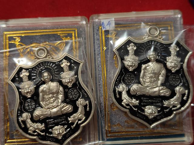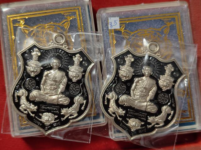 (2องค์) คู่ที่3 เนื้ออัลปาก้าลงยาดำ หลังฤาษีจีวร เหรียญ ๕ พยัคฆ์ หลวงพ่อยอด วัดตะคร้อ อำเภอโนนไทย จังหวัดนครราชสีมา |