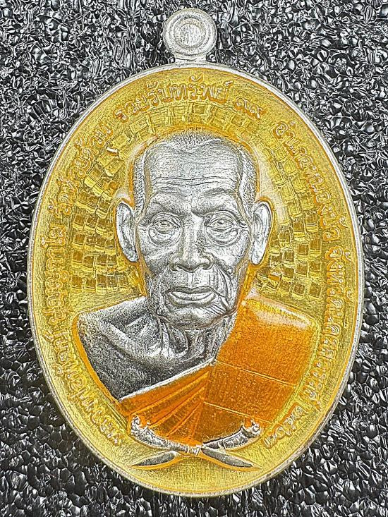 เหรียญพิมพ์นั่งพาน รุ่น 1 หลวงพ่อสวัสดิ์ ปุณณสีโล เนื้อเงินลงยาสีฟ้า หมายเลข 144 วัดใจเคาะแรก!!! |