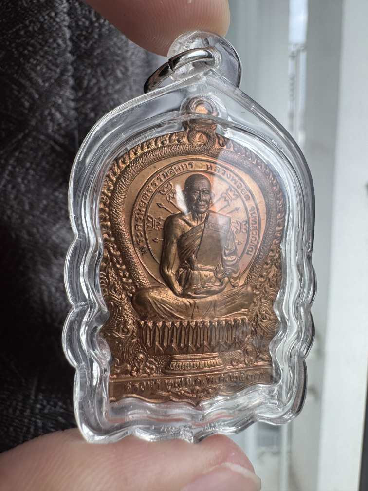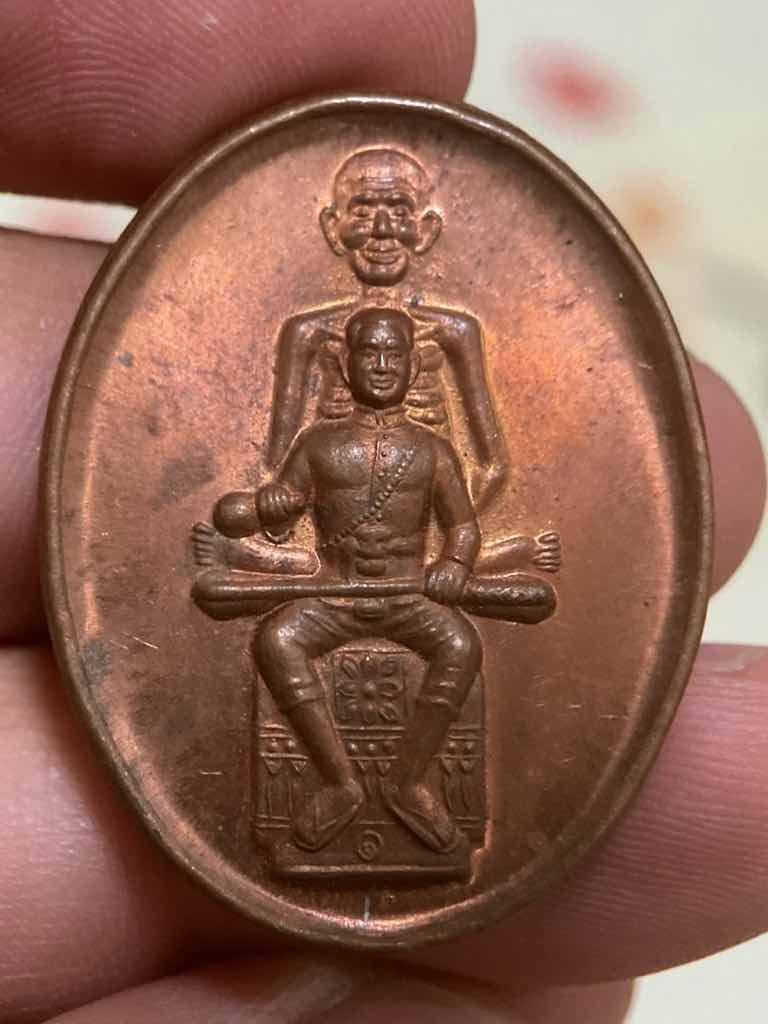 เหรียญที่ระลึกฉลองวิหาร พระอาจารย์อดิเรก วัดหนองทราย ปี 66 เนื้อทองแดงผิวไฟ พิมพ์เล็ก ตอกโค้ด |