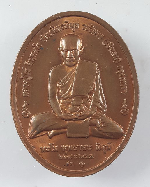 เหรียญเจริญสุข หลวงปู่สุข วัดป่าหวาย จ.สิงห์บุรี ปี2553 เนื้อทองแดง |