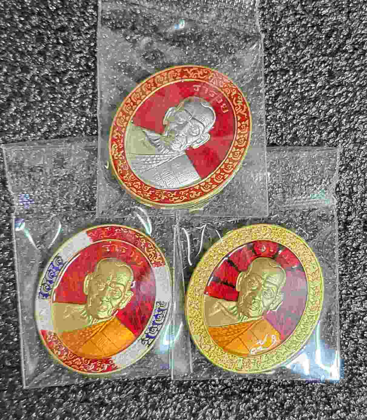 เคาะเดียวแดง เหรียญหลวงพ่อพัฒน์ รุ่นพยัคฆ์แสนล้าน โซนลงยาสามสี รวม 3 เหรียญ |