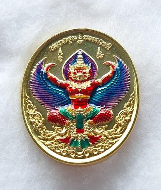 เหรียญพญาครุฑ หลวงปู่ศิลา วัดโพธิ์ศรีสะอาด รุ่นยอดบารมี ลังนำฤกษ์ เนื้อทองทิพย์ ลงยาทรงเครื่อง ลงยาปีกครุฑ No.35 |