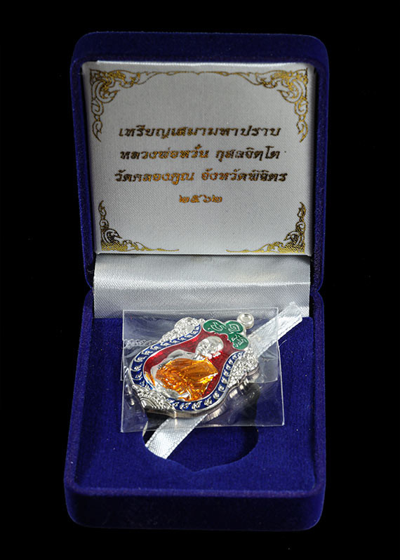 เหรียญมหาเศรษฐี พ.ศ.2549 "เนื้อเงินลงยา" หลวงปู่ทิม วัดพระขาว จ.อยุธยา สวยๆ พร้อมตลับเงิน |