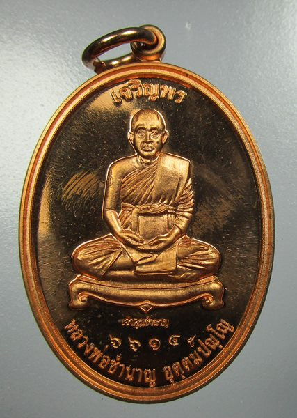 เหรียญหลวงปู่นนท์ วัดเหนือวน จ.ราชบุรี รุ่นสมปรารถนา ปี 2545 เนื้อทองฝาบาตรตอกโค้ด |