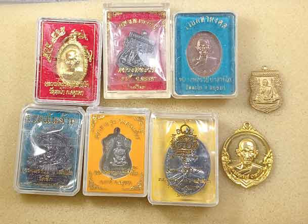 เหรียญ 2 เหรียญ หลวงปู่บุดดา วัดกลางชูศรีเจริญสุข สิงห์บุรี+ เหรียญหลวงพ่อจรัญ วัดอัมพวัน +เหรียญหลวงพ่อเชย วัดท่ากระบือ + เหรียญหลวงพ่อเชื้อ วัดกลางท่าข้าม+ พระครูอิสรธรรมโสภณ วัดศรีสำราญ สิงห์บุรี |