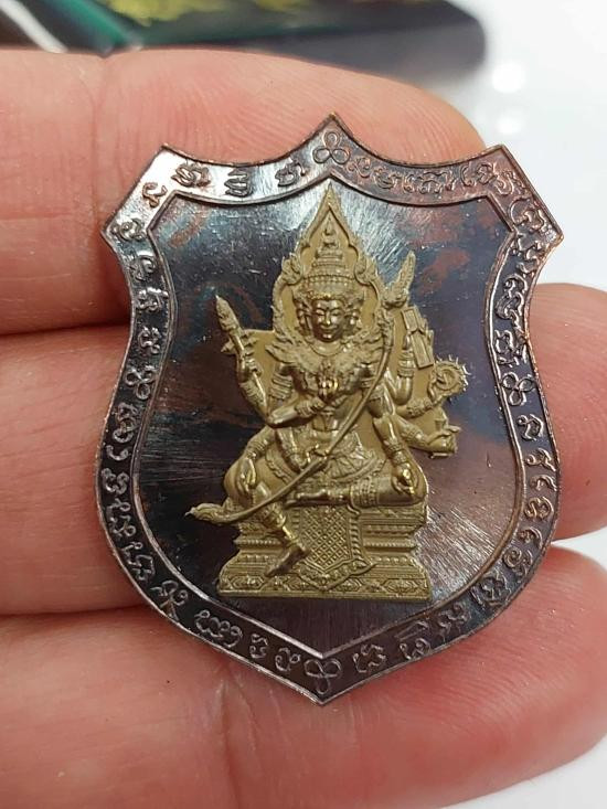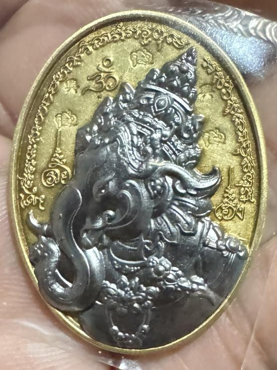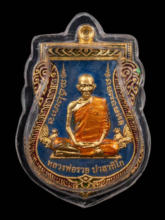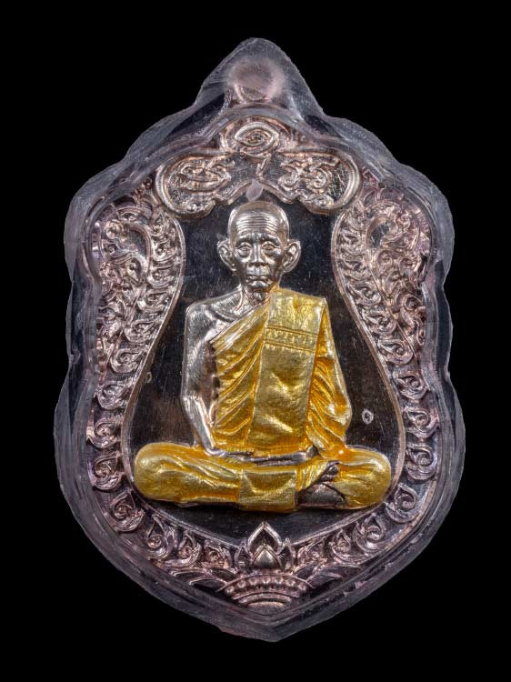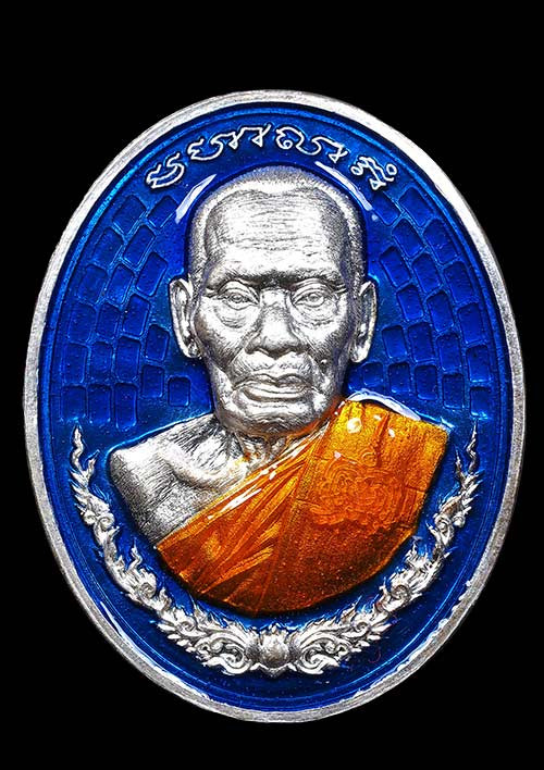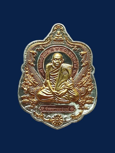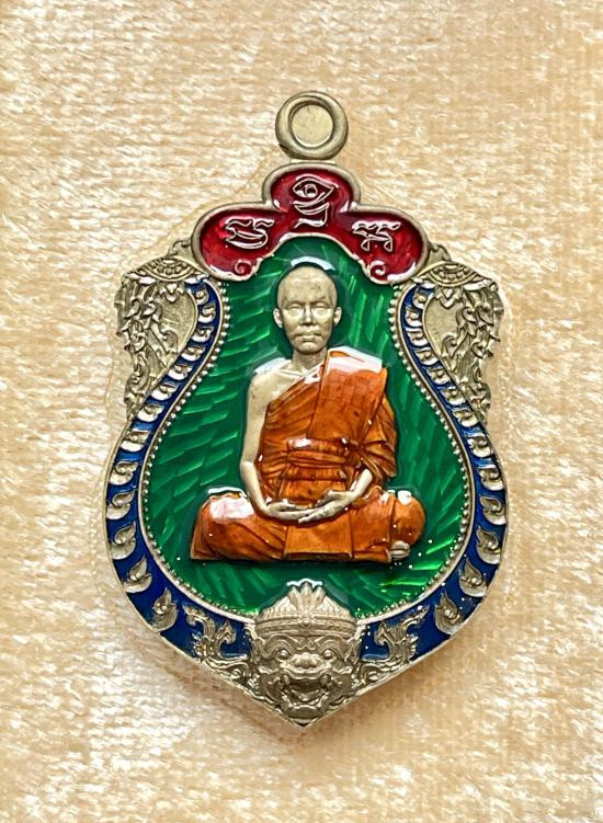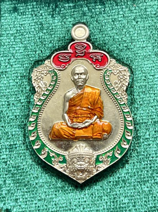 เหรียญหลวงพ่อรวย รุ่นรวยพันล้าน เนื้อเงินลงยาหน้ากากทองคำ เลขสองหลัก 38 พร้อมกล่องเดิม |