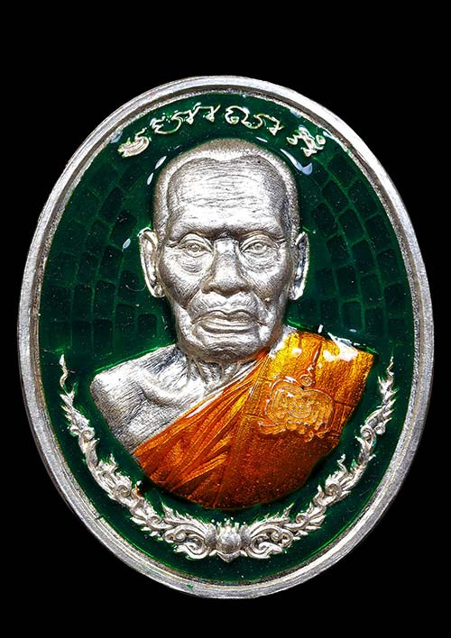 เหรียญรุ่นซื้อที่ดิน หลวงพ่อเอียด วัดไผ่ล้อม จ.อยุธยา ปี 54 เนื้อเงินลงยา 3 สี กล่องเดิม |