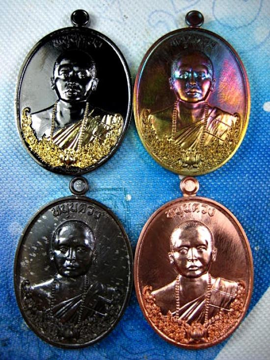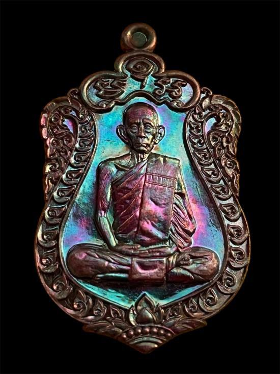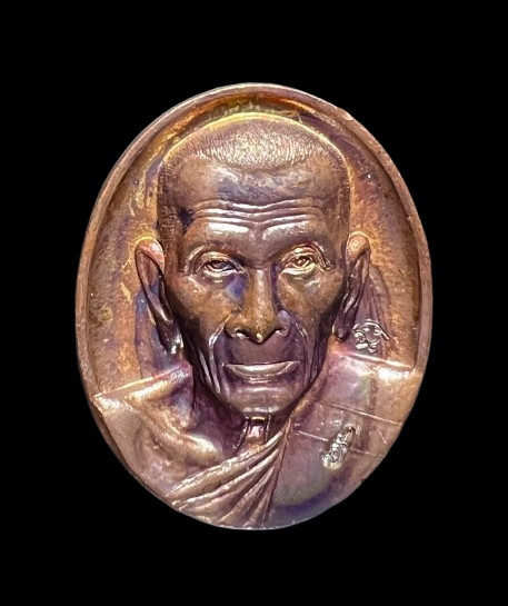 เหรียญเสมารวยมหาเศรษฐี หลวงพ่อรวย วัดตะโก ปี 2557 เนื้อทองแดงผิวรุ้ง เลข 1997 สภาพสวยผิวเดิม มีกล่อง |