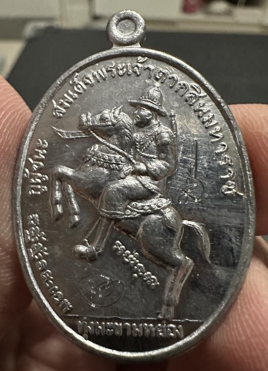 เหรียญสมเด็จพระเจ้าตากสินมหาราช "กูผู้ชนะ"ณ.ทุ่งมะขามหย่อง (อาจารย์ต้อม วัดโพธิ์เผือก จ.อยุธยา เจ้าอาวาสองค์ปัจจุบันปลุกเสก) เนื้อตะกั่ว ด้านหลังมียันต์เสือคล้ายหลวงพ่อเปิ่น |