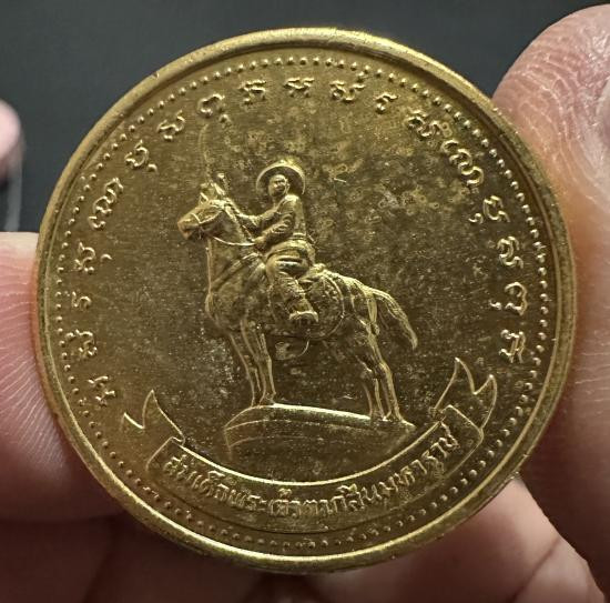 เหรียญ พระเจ้าตากสิน หลัง หลวงพ่อสมชาย วัดเขาสุกิม จันทบุรี เนื้อกะไหล่ทอง |