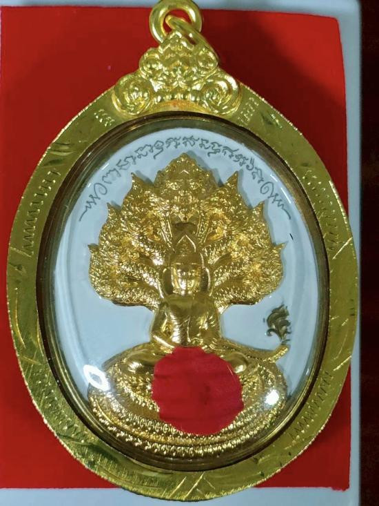เหรียญปรกโพธิ์พญานาค หลวงปู่อิ่ม วัดทุ่งนาใหม่ จ.นครศรีธรรมาราช เนื้อชนวนลงยาขาว หน้ากากชุบทอง เจิมแป้งแดง หลังพญานาคเพ้นท์ อุดมวรสาร ตอกโค๊ตพิเศษ โค๊ตเม็ดงา ตอกหมายเลข 333 เลี่ยมพร้อมใช้ |