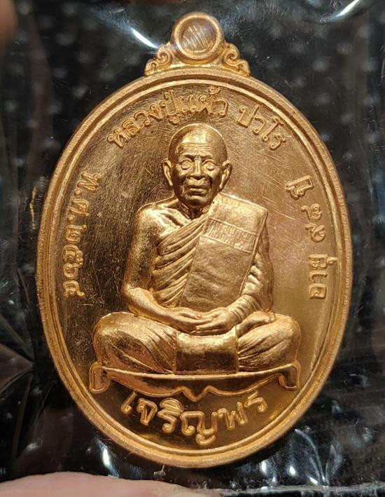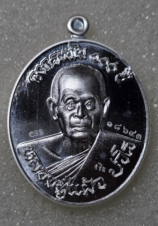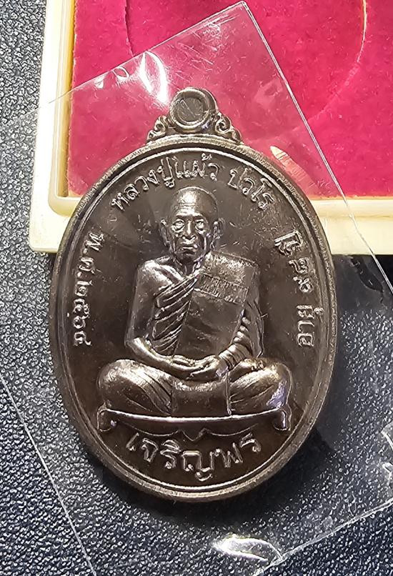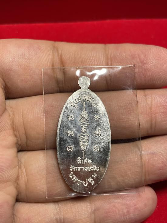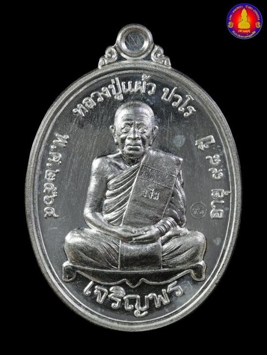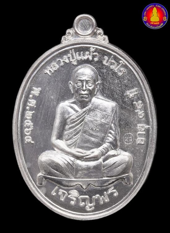 เหรียญเจริญพรล่างเนื้อเงิน หลวงปู่แผ้ว ปวโร วัดรางหมัน พร้อมกล่องเดิม สวย 100% |