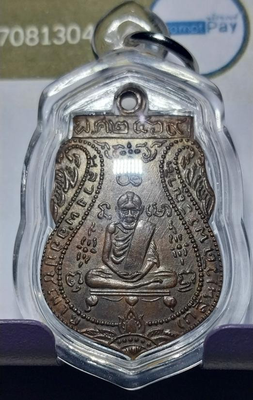 หลวงปู่แผ้วปวโรวัดรางหมัน เหรียญที่ระลึก ฉลองเลื่อนสมณศักดิ์ หลังพัดยศเนื้อเงิน เลี่ยมพร้อมใช้สวยๆเดิมๆ |