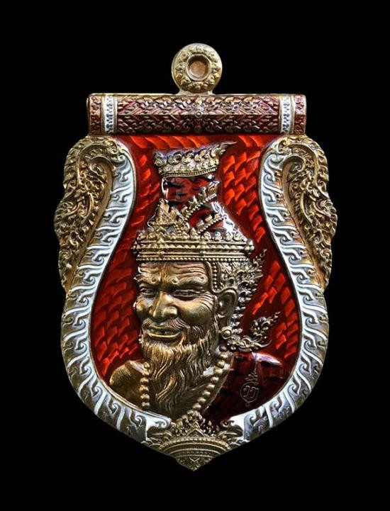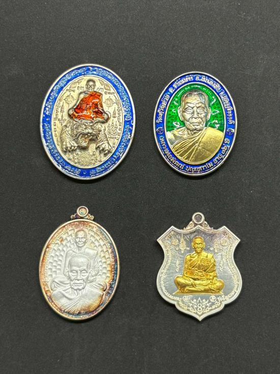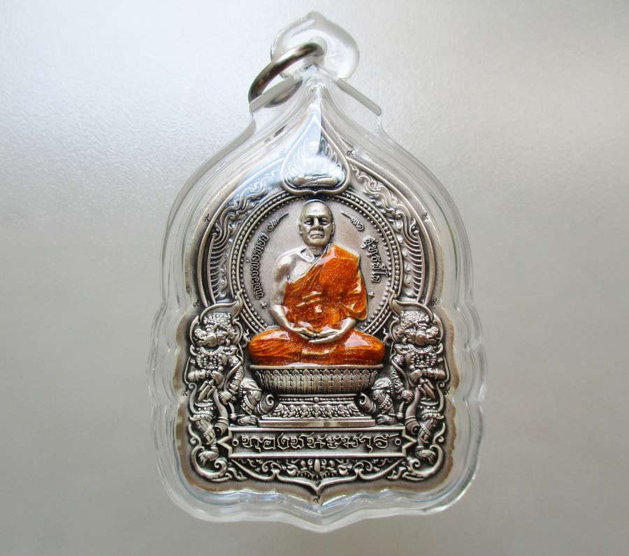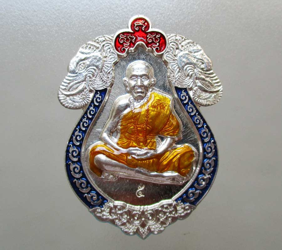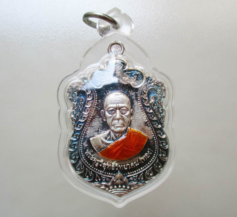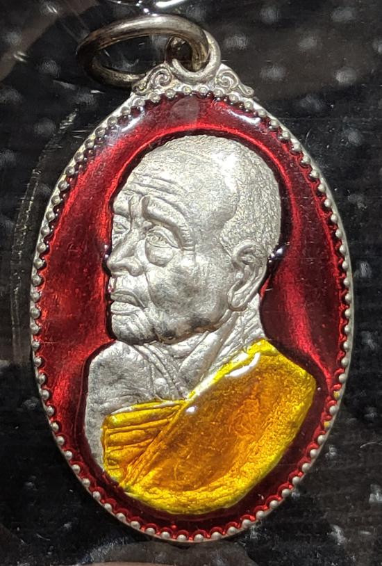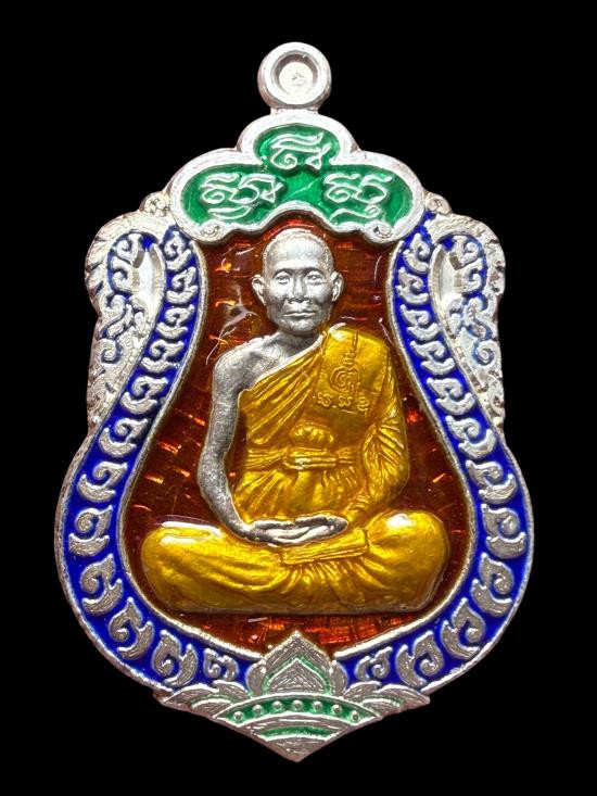 เหรียญนั่งพาน รุ่น ทองชนะมาร หลวงพ่อทอง วัดบ้านไร่ จ.นครราชสีมา พ.ศ.2565 เนื้อเงินรมซาตินลงยาสีจีวร ตอก 2 โค๊ต ตอกเลข เลี่ยมกันน้ำพร้อม |