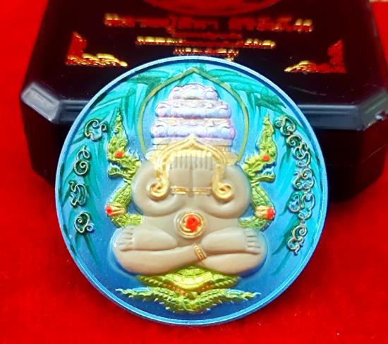 พระปิดตาพังพะกาฬ รุ่นไร้พ่ายแพ้ไม่เป็น วัดพุทไธศวรรย์ หล่อปั๊มหลังแบบ หายาก หล่อดินไทย จัดสร้างแค่119เหรียญ เลข61 ส |