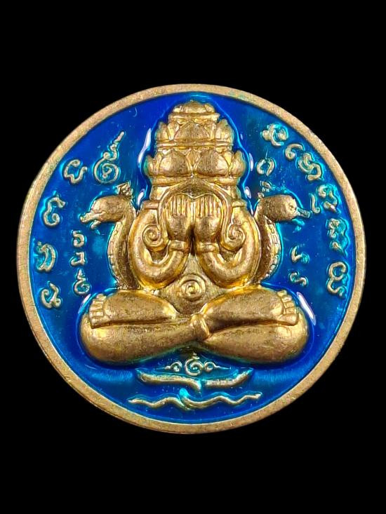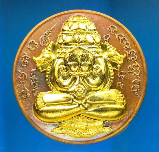 เหรียญปิดตาพระโพธิสัตว์พังพะกาฬ เนื้อทองแดงชุบทองไมครอน เลข590 ตอกสองโค๊ตแยกชุดพิเศษกรรมการ 9 รอบ 9 พิธี 108 ปี ท่านขุนพันธ์ จ.นครศรีธรรมราช ปี 2549 |