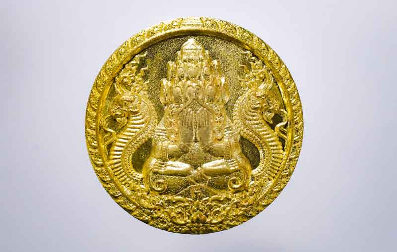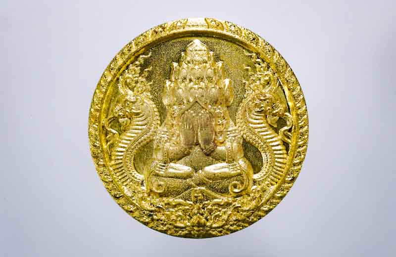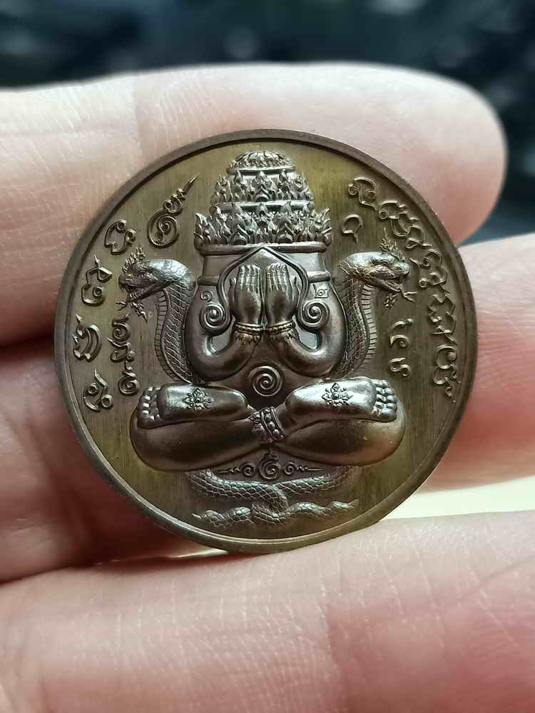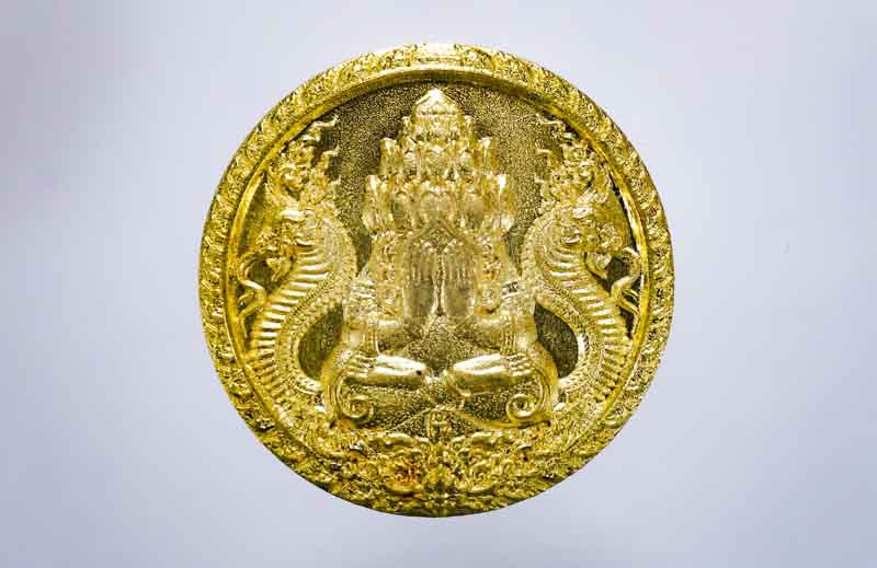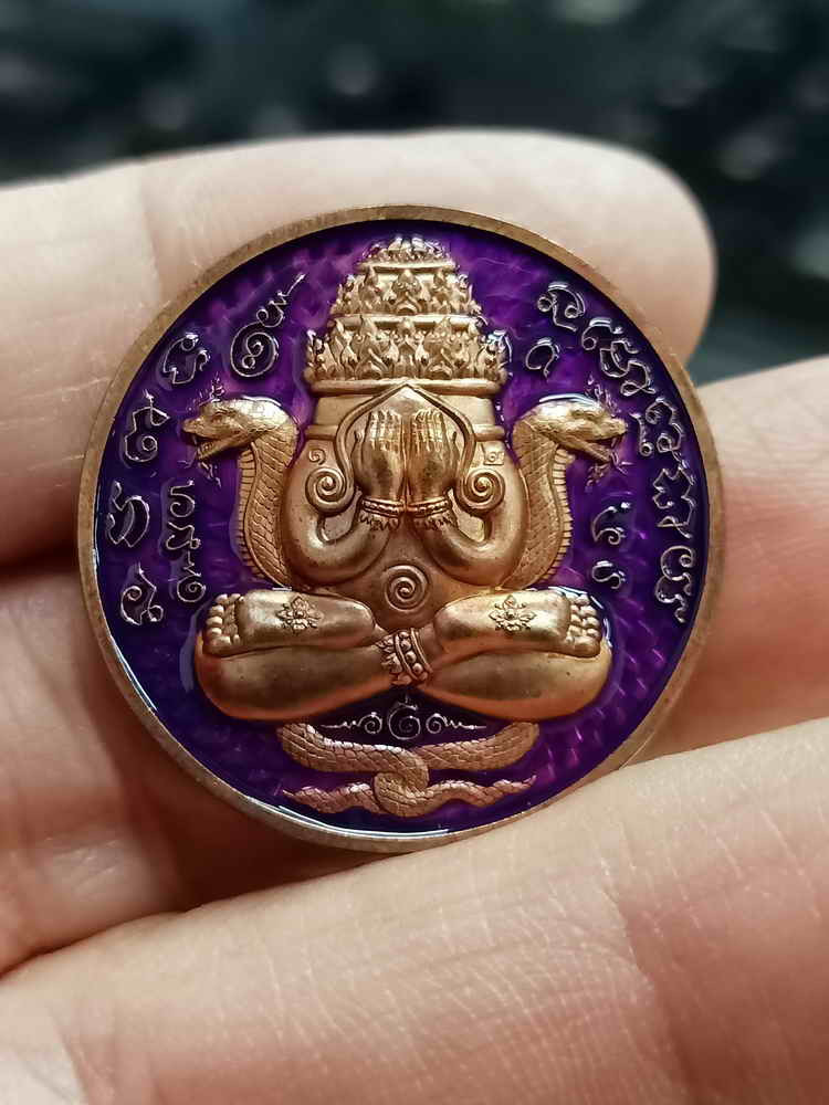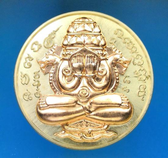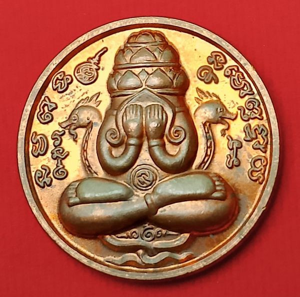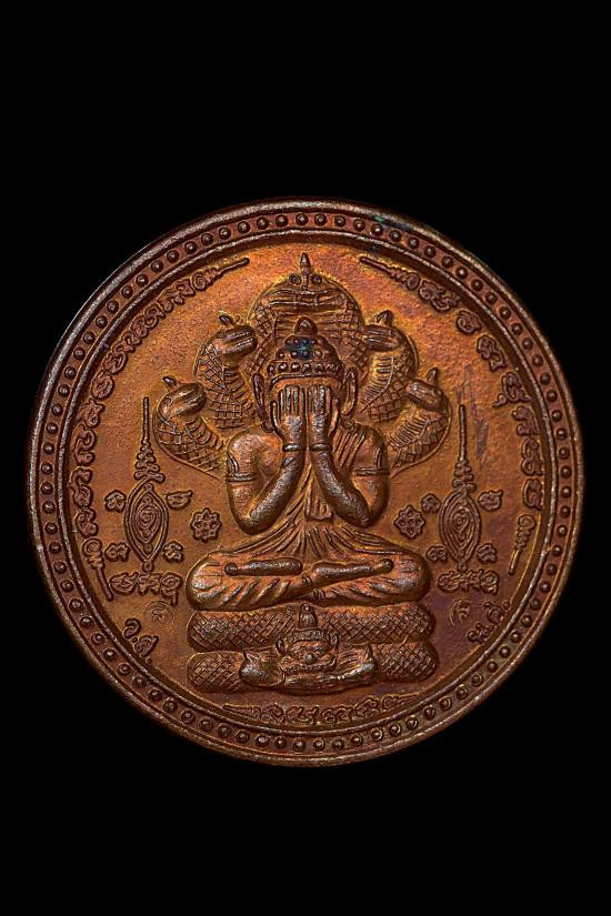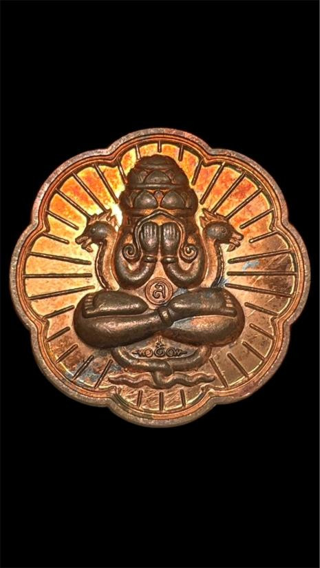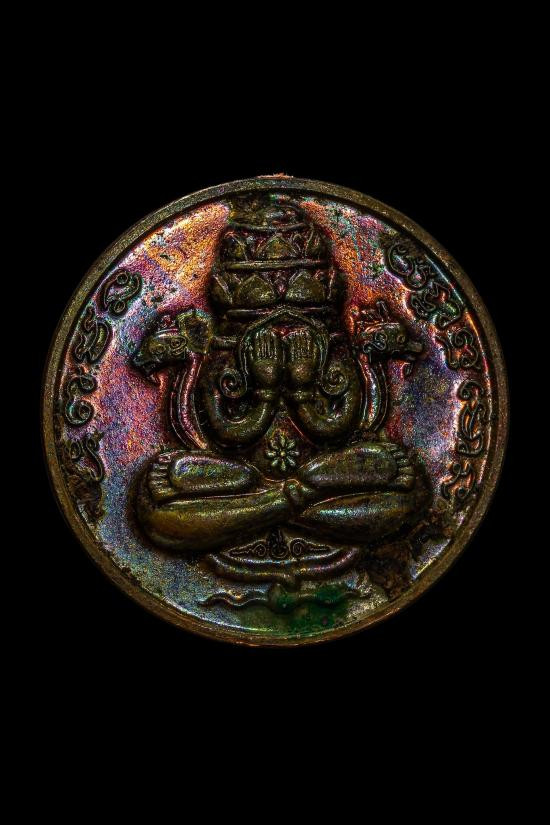 เหรียญปิดตาพระโพธิสัตว์พังพะกาฬ เนื้อทองแดงชุบสามกษัตริย์ เลข590 ตอกสองโค๊ตแยกชุดพิเศษกรรมการ 9 รอบ 9 พิธี 108 ปี ท่านขุนพันธ์ จ.นครศรีธรรมราช ปี 2549 |